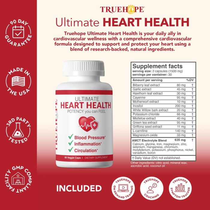 Truehope Ultimate Heart Health is a comprehensive cardiovascular formula designed to support and protect your heart using a blend of research-backed, natural ingredients. Whether you’re proactively maintaining heart health or supporting existing concerns, this advanced formula is your daily ally in cardiovascular wellness.